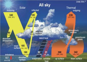 Le « bilan thermique de la terre » est déjà présenté ailleurs sur ce site et rappelé ici (source : https://actugeologique.fr/2022/07/le-bilan-radiatif-de-la-terre/)