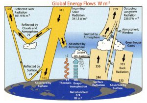 moins, que nous détaillons ici. Nous prenons les chiffres du troisième schéma, intitulé Earth’s energy global budget, K. Trenberth et al., American Meteorological Society, 2009. et utilisés par le GIEC.